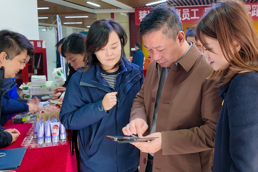 活動(dòng)現(xiàn)場(chǎng)氛圍熱烈,參與人員踴躍互動(dòng)。活動(dòng)通過(guò)移動(dòng)視頻播放設(shè)備循環(huán)展播,以生動(dòng)的畫面與精煉的語(yǔ)言,全面展示平臺(tái)功能、特色、優(yōu)勢(shì)及典型用戶使用場(chǎng)景,有效激發(fā)了參與者的興趣。會(huì)場(chǎng)特設(shè)產(chǎn)品展示區(qū)與禮品兌換區(qū),工作人員為到場(chǎng)人員細(xì)致講解平臺(tái)2.0的全新功能與服務(wù)模式?!?分錢兌換路演伴手禮”活動(dòng)成為現(xiàn)場(chǎng)焦點(diǎn),參與者通過(guò)簡(jiǎn)單操作,即可兌換精選商品,在輕松互動(dòng)中切實(shí)感受平臺(tái)的便捷與實(shí)惠。樣品試吃區(qū)同樣人氣爆棚,大健康產(chǎn)品、堅(jiān)果、現(xiàn)熬羊肉湯、枸杞原漿、羊奶飲品等好物吸引眾人駐足品嘗。歡聲笑語(yǔ)間,不少員工現(xiàn)場(chǎng)咨詢并下單,直觀體驗(yàn)到升級(jí)后平臺(tái)的高效與便利。